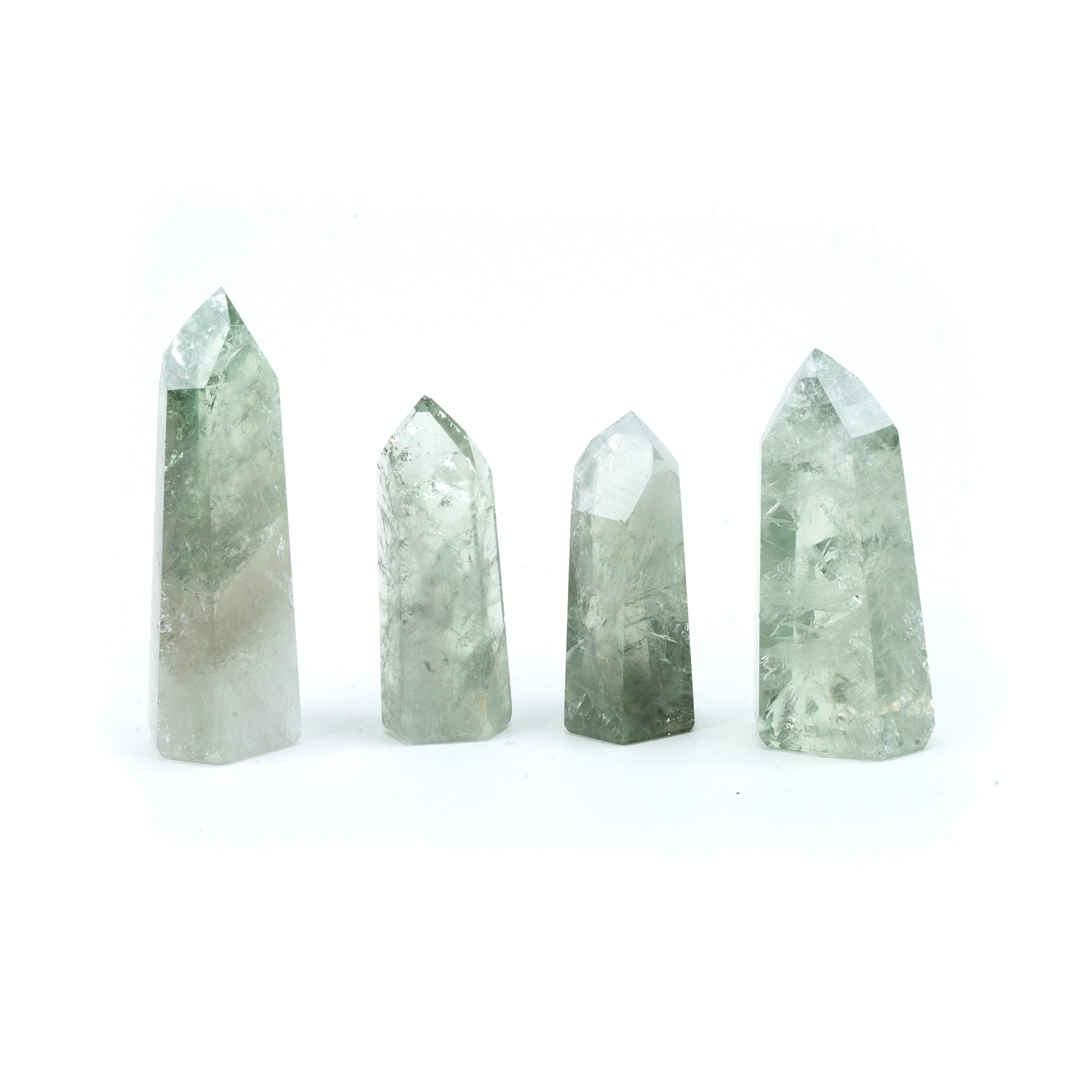 Green amethyst, aka prasiolite, ranges from light mint green, to deep, translucent green. Many will have clear quartz and inclusions. These points are a gorgeous addition to any collection.