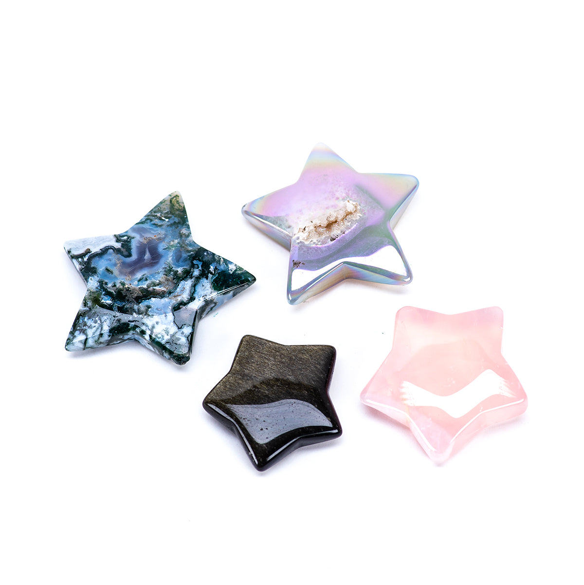 Specs: Each star is about 2.5" wide and weighs 33- 63 grams. It has various inclusions and cracks and a sparkling druzy!