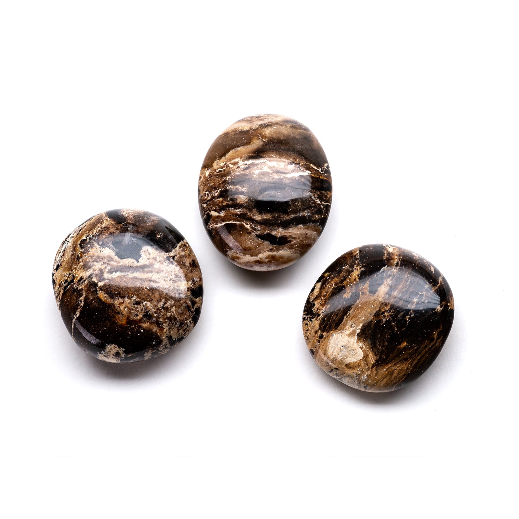 Specs: Each jumbo black opal palm stone pebble has been hand chosen and includes variations in color and pattern. They measure approximately 2- 2.5" long.